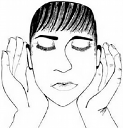 La position des mains est importante : elles servent à amplifier le son et l’effet des vibrations dans le corps.- Les mains se posent en forme de conque sur chaque côté du visage, le pouce le long de la mâchoire et l’index le long du pavillon de l’oreille. (sauf pour le ‘AUM »).